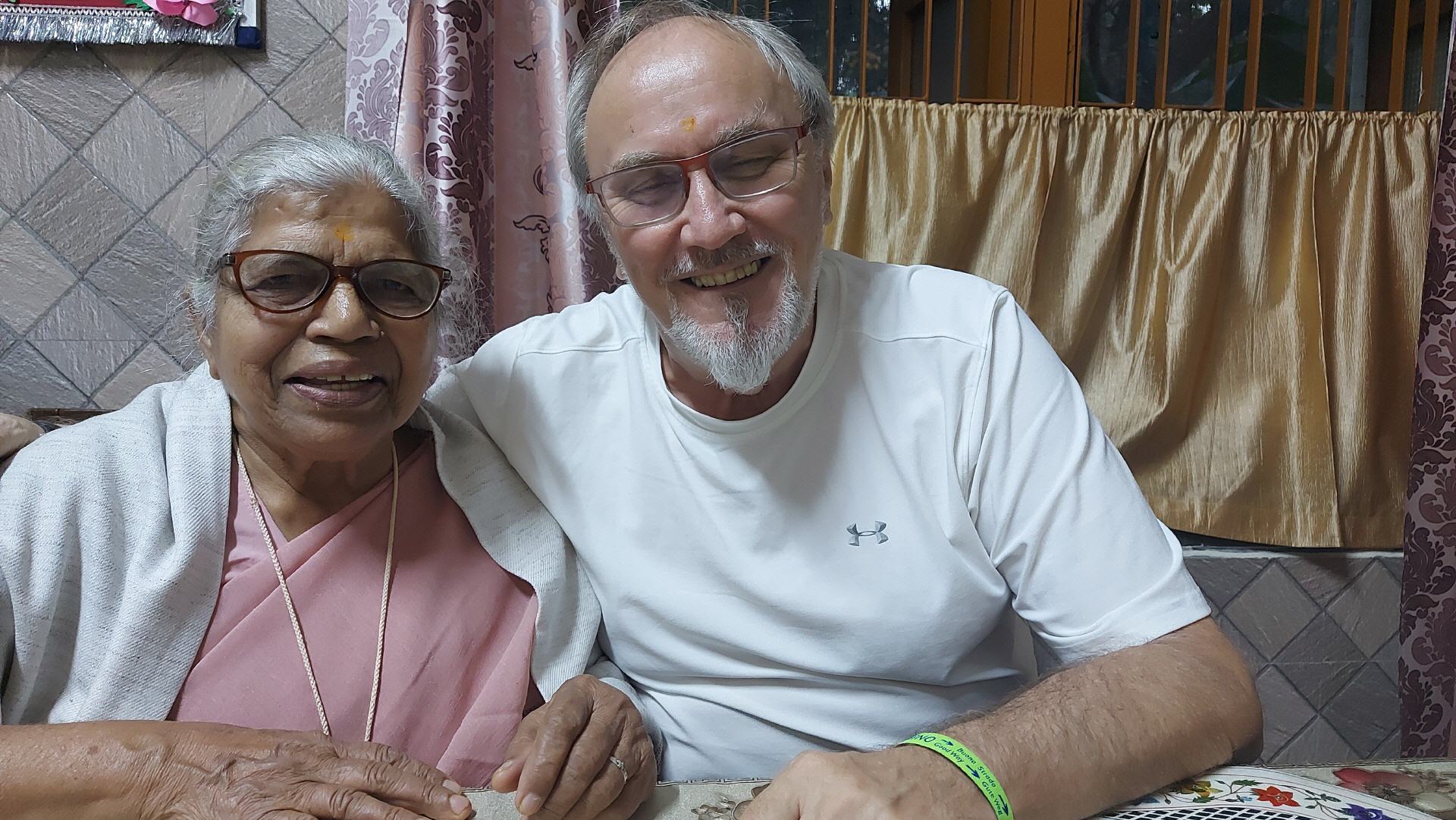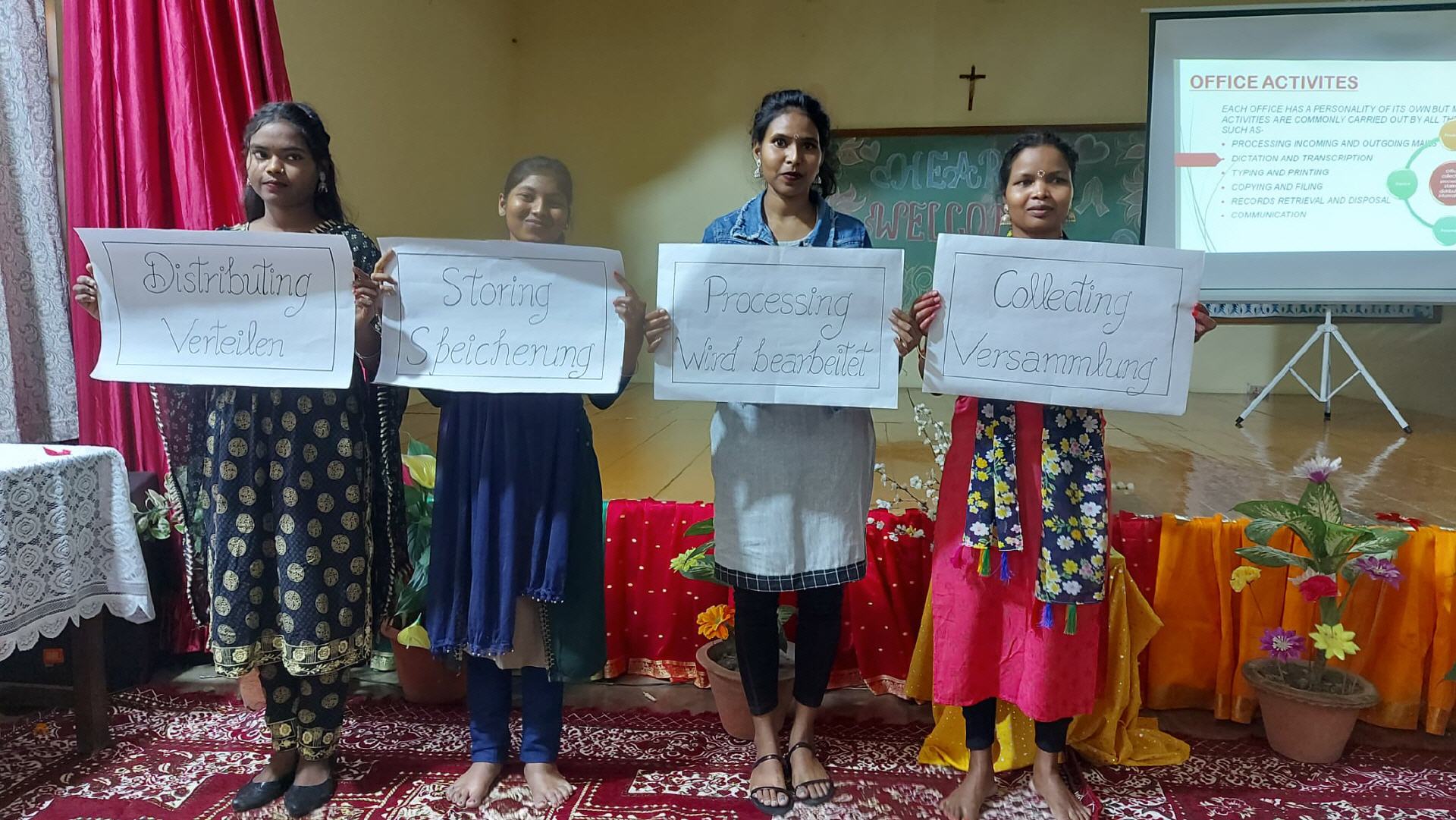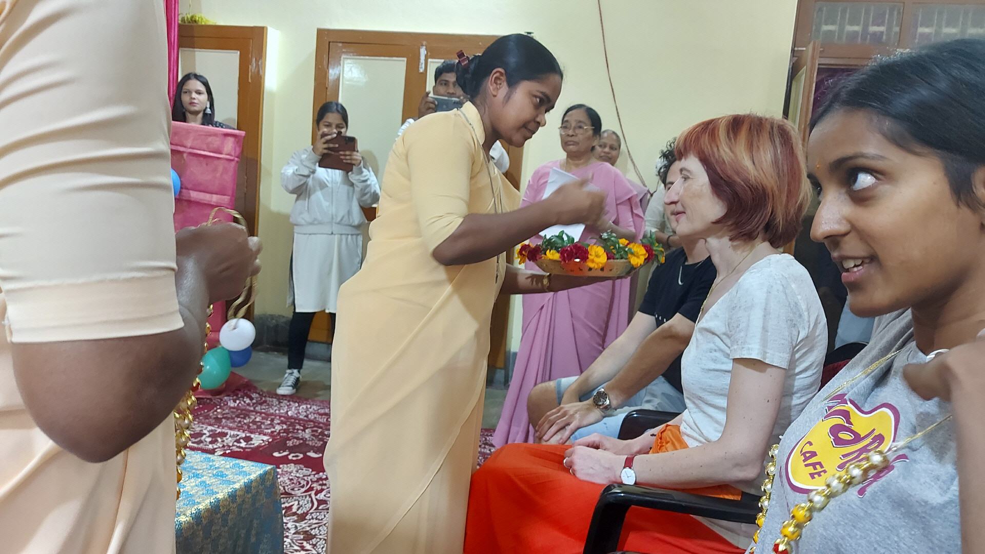 ausgesetzten alten Damen und die Asha Niketan Girls treffen, die ein Programm für uns vorbereitet hatten. Einen Besuch statteten wir einer Deutschklasse von ca. 25 Kranken-und Altenpflegerinnen ab, die sich gerade auf die