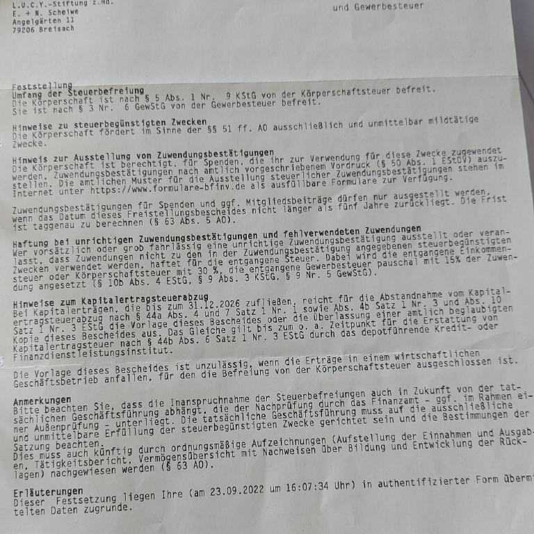 Liebe LUCY-Freundinnen und Freunde, liebe LUCY-Spenderinnen und Spender.