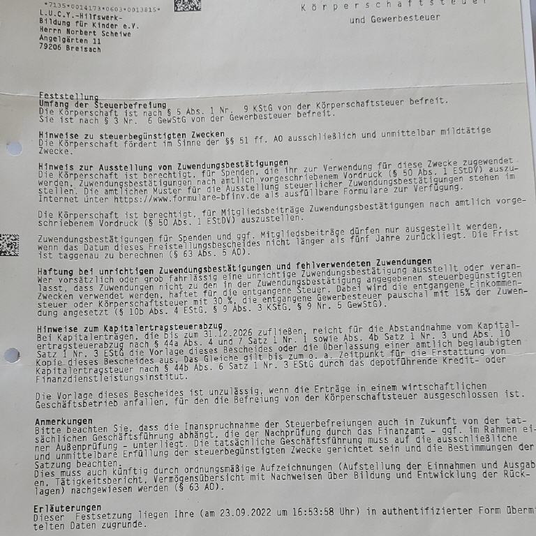 ehrenamtlicher Geschäftsführer LUCY-Hilfswerk für Kinder e.V.