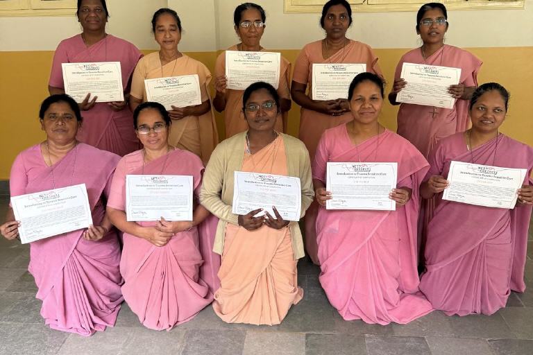 Am gestrigen Samstag, den 16.November konnte unsere Referentinnen Lisa und Nicki in Bangalore den ersten Wochenkurs zum Thema „Traumasensilbilisierung“ erfolgreich abschließen. Zehn Sisters, die als Pädagoginnen in unterschiedlichen Bereichen des Ordens tätig sind, erhielten stolz ihr Zertifikat überreicht. Mit diesem neuen Wissen, können sie in Zukunft das Verhalten traumatisierter Kinder besser einordnen und noch besser als bisher darauf reagieren. In der kommenden Woche werden sich zwölf weitere Sisters auf die Fortbildung einlassen.