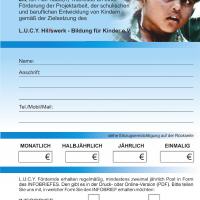 Wenn Sie LUCY-Förderer werden möchten können Sie den Förderantrag online ausfüllen oder sich die PDF-Datei ausdrucken und ausgefüllt an die Geschäftsstelle senden.